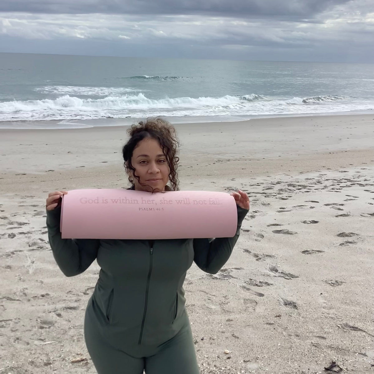 - The God Is Within Her™ Eco Yoga Mat was created as a physical reminder of the divine presence within you. Rooted in Psalm 46:5, it anchors your practice in faith, strength, and remembrance — God is within you, and you will not fall.Crafted from recycled, earth-friendly thick materials, this mat offers grounded support, intentional cushioning, and a reliable non-slip surface. It is designed to hold you through moments of movement, stillness, prayer, and breath — supporting both body and spirit with purpose and care.